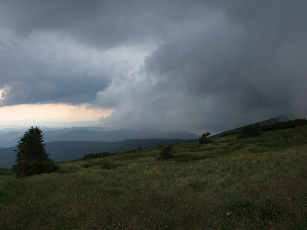 bouřkou na Harrachovy kameny