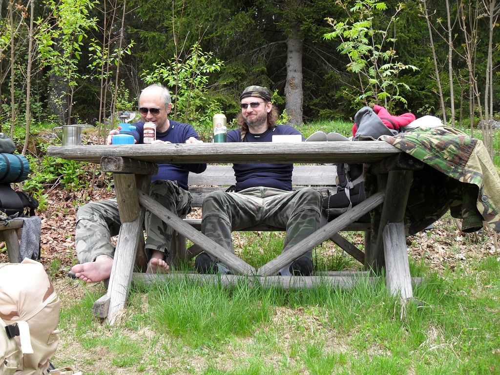 Po super noci nás okolo 6:30 probudilo pracovní nasazení správců a jiných zaměstnanců NP Šumava. A tak balíme a vyrážíme směrem na Knížecí pláně. A je to tady- prší! Útočiště nalézáme na horské chatě Hájenka. Bereme místo a čekáme na lepší počasí. Prší jen drobně, ale prší. Hned jak se vyčasilo tak pokračujeme na červenou hraniční značku. Míjíme hřbitov v místech kde stávala horská obec Knížecí Pláně. Cestou jsou pěkné výhledy do údolí a počasí nám zatím taky přeje. Chceme přespat na veřejném nocovišti u obce Strážný. Jeho polohu mám v GPS a tak ho určitě nemineme. Asi tak u místa zvané Světlá hora začalo drobně pršet. V plánu máme přečkat déšť v obci Strážný a návrat na veřejné nocoviště. Po jeho nalezení náčelník prohlásil: Ty asi upadli na hlavu tady máme spát v dešti, to budu raději spát pod smrčkem v 1. zóně NP. Nocoviště je jen ohraničená louka a mokré lavičky. Jídlo vaříme kde jinde než v lese, protože k tomu určené místo není vůbec vhodné.Už za slušného lijavce přicházíme do Strážného. A nejsme sami, za námi se objevují další vandrovníci. Po prohlídnutí radarové situace v mobilu, bereme jako všichni vandrovníci herberk v Hotelu SKI. Paní správcová je velmi spokojená, že prší, protože má plno hostů.
