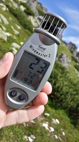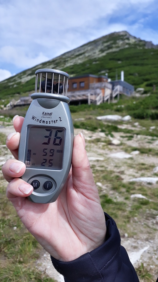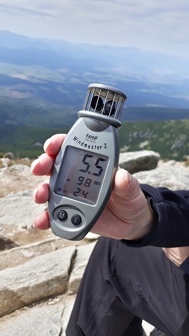 Síla větru na vrcholu - max. náraz 98 km/h